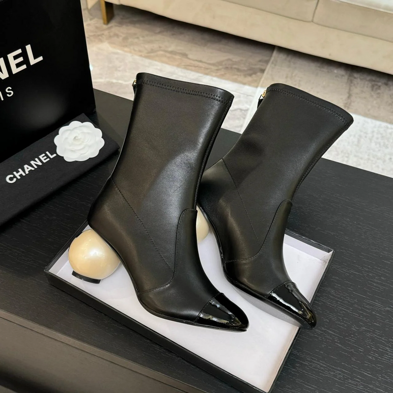 جزمة كعب CHANEL - اسود