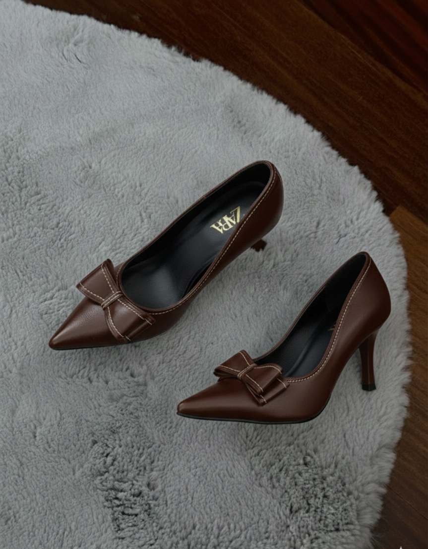 كعب ZARA بني ببيون 8cm