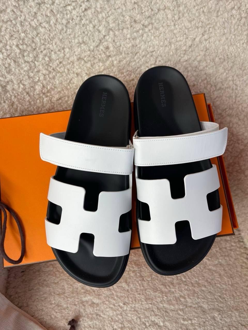 Men's Hermes Slipper -White Black