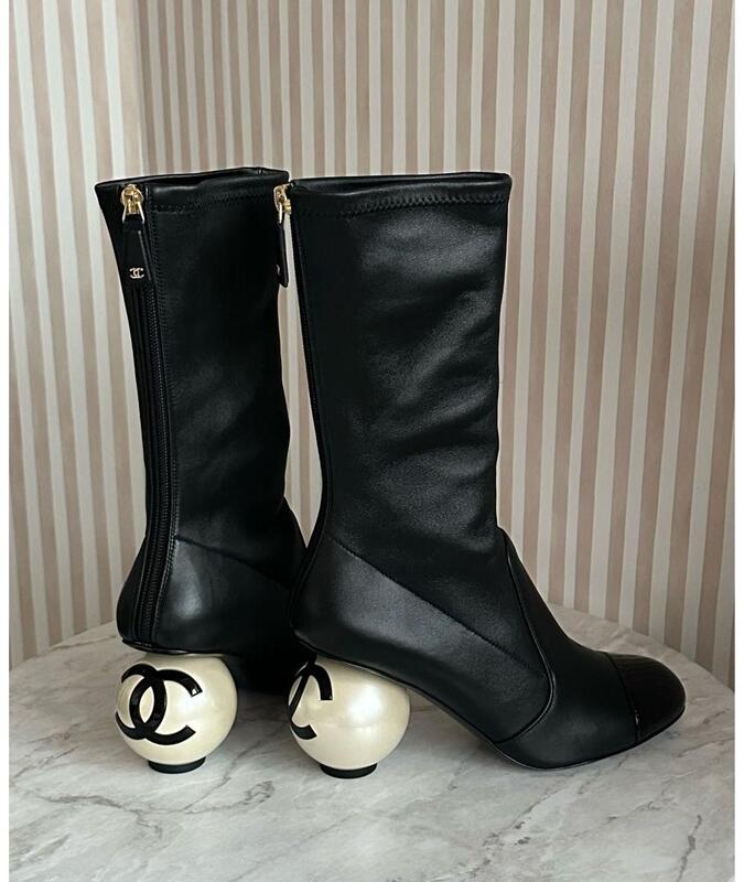 جزمة كعب CHANEL - اسود